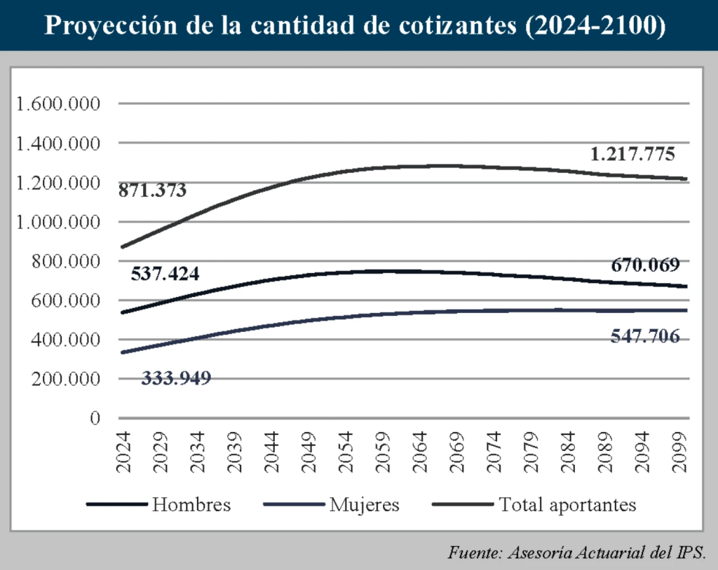 El incremento previsto confirma que la transición demográfica será el principal desafío del IPS en los próximos 70 años. Actualmente, la relación es de un jubilado por cada 10 aportantes; sin embargo, para finales de siglo esa proporción se deteriorará drásticamente, con menos de dos cotizantes por cada jubilado.